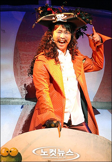 19일 오후 서울 양재동 교육문화회관 대극장에서 열린 어린이뮤지컬 ''후크선장과 띠보'' 프레스콜에서 후크선장역의 박준형이 열정적인 무대를 선보이고 있다.