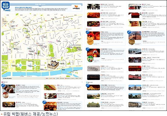 [BestNocut_R]윙버스 유럽 빅맵은 타블로이드 신문 크기로, 파리, 런던, 로마, 프라하 4개 도시의 직접 특별 제작한 상세 지도와 블로거들이 뽑은 도시별 맛집, 쇼핑, 볼거리 등 330여 곳의 여행정보를 담고 있으며, 윙버스 본사와 이오스 여행사, 세계로 여행사, 인천공항 LG데이콤 센터 등을 통해서 여행객들에게 무료로 제공하고 있다.