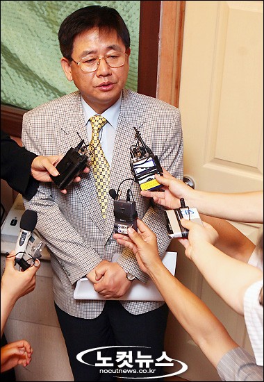 20일 오후 아프가니스탄 무장세력 탈레반에 의해 납치된 교인들이 소속된 경기도 분당구 정자동 샘물교회에서 사무처 권혁수 장로가 기자들의 질문에 답하고 있다.