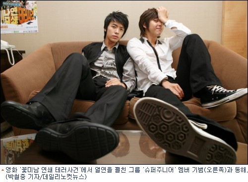 ''꽃미남 연쇄테러 사건''으로 영화 데뷔한 ''슈퍼주니어''의 김기범과 이동해가 영화에 도전한 느낌을 밝혔다.