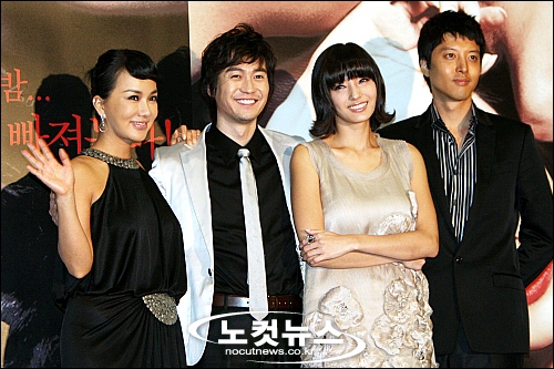 1일 오후 서울 종로 서울극장에서 영화 ''''지금 사랑하는 사람과 살고 있습니까''''(정윤수 감독·씨네2000제작) 기자간담회에서 엄정화 박용우 한채영 이동건이 포즈를 취하고 있다.