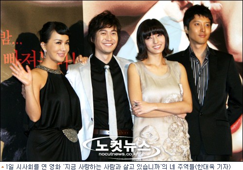 함께 시사회장에서 언론 배급 관계자들과 시사를 하던 엄정화 이동건 한채영 박용우는 쑥쓰러운 듯 너털웃음을 짓기도 했다.