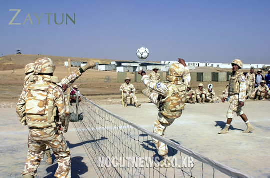 족구를 즐기고 있는 자이툰 부대원들 (아르빌=자이툰 부대 제공)
