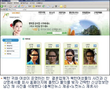 최근 새터민(탈북) 여성을 상대로 한 결혼정보 업체들의 자극적인 홍보 문구가 비난을 사고 있다.