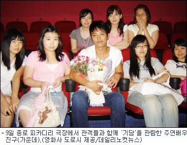''기담 러버''를 자처하는 네티즌들이 늘고 있는 가운데 ''기담''(감독 정가형제)의 주연배우들이 관객과 함께 영화보기에 나선다. 이미 주연배우 진구가 9일 종로 피카디리 극장에서 ''함께보기'' 행사에 참여했고 오는 14일에는 김보경, 김태우, 이동규가 바통을 이어받는다.