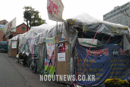 정확히 1년 전인 지난 해 11월 15일. 정부의 강제출국 조치에 쫓긴 외국인 노동자 150여명이 이곳에 모여 철야농성을 시작했다. 그러나 이들은 지금도 비닐과 판자로 얼기설기 지어놓은 허름한 농성장을 지키고 있다. 현재 남은 사람은 고작 30여명.