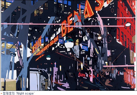 [BestNocut_R]김미진 홍익대 교수는 "정재호의 회화는 선과 형태로 드러난 상징성으로, 그림이지만 소설과 애니메이션의 텍스트를 읽어나가는 듯하다. 보이는 풍경과 반대로 비친 풍경, 의도된 선으로 파편화된 이미지는 반복 스캐닝되어 분석적이며 디지털적 사유를 뿜어대고 있다"고 평했다.