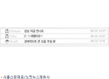 이른바 애인을 구해 준다는 ''''애인 대행'''' 사이트에 등장하는 성매매 유혹 문구들이다. 애인 대행 사이트는 인터넷 포털 사이트 등에서 쉽게 검색할 수 있어 청소년들의 성매매를 조장한다는 비판을 받았다. 앞으로 이런 사이트에 청소년들이 접근하지 못하도록 하는 방안이 추진된다.