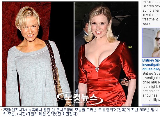 데일리 메일은 지난 2003년 영화 ''브리짓 존스의 일기''를 촬영한 후 풍만한 몸매를 과시했던 젤위거의 사진을 나란히 게재, 그녀의 ''드라마틱한'' 체중변화에 주목했다.