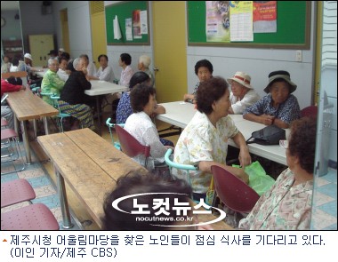 4일 제주시청 어울림 마당에서는 노인들을 대상으로 한 무료급식이 이뤄졌다.