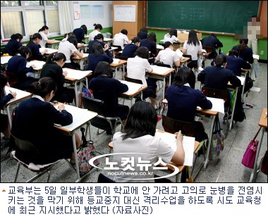 교육인적자원부(부총리 김신일)는 5일, 일부 학생들이 학교에 가지 않으려고 고의로 눈병을 전염시키는 것을 막기 위해 등교중지 대신 격리수업을 하도록 시도 교육청에 최근 지시했다고 밝혔다.