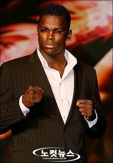 28일 오후 서울 삼성동 인터콘티넨탈 호텔에서 열린 ''K-1 월드 GP 2007 IN SEOUL'' 기자회견에서 레미 본야스키 선수가 단상 위에서 취재진을 향해 포즈를 취하고 있다.