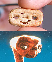 지난달 22일, 성모 마리아의 얼굴 형상이 나타난 10년 된 치즈 샌드위치 조각이 인터넷 경매 사이트에서 2만 8천 달러(한화 3천여만 원)에 낙찰된 데 이어 이번에는 영화 ''E.T.''의 주인공 ''E.T.''의 형상을 닮았다는 시리얼이 경매 사이트에 등장해 화제다.