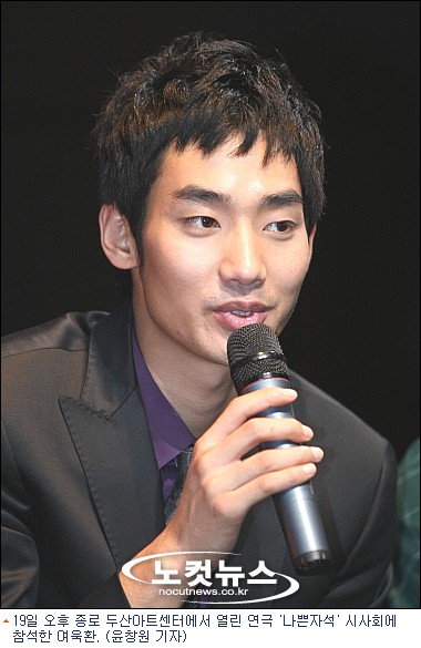 여욱환은 19일 오후 두산아트센터 열린 ''''나쁜 자석'''' 시사회에서 ''''첫 연극 도전이라 떨리고 무서웠지만 훌륭한 선배들과 함께 출연해 영광이다''''며 ''''대본이 재미있었고 이해하지 못한 부분이 있어 알아가고 싶어서 작품을 선택했다''''고 출연 배경을 설명했다.