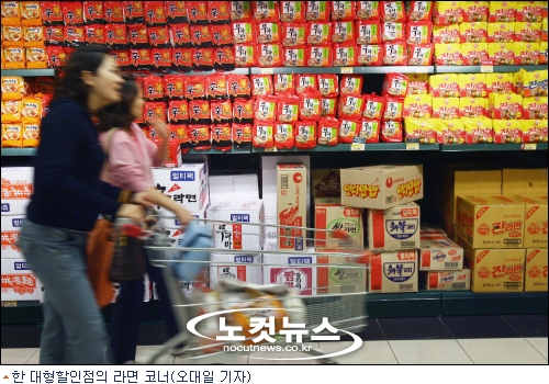 라면의 평균 나트륨 함유량은 1천908mg으로 하루 섭취권장량의 95%를 상회했다.