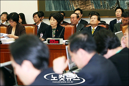 29일 오전 국회 문광위에서 열린 한국방송공사(KBS) 국정감사에서 정연주 사장이 인사말을 마친 뒤 천정을 보고 있다.