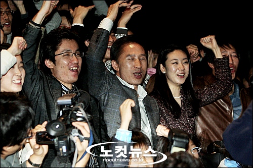 이명박 후보 ''환호는 열정적으로''