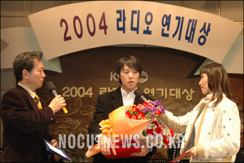 '2004 라디오 연기대상'에서 공로상을 받은 故 장정진씨를 대신해 수상대에 오른 고인의 장남 장세영씨. (김민수기자/노컷뉴스)