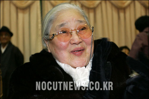 CBS, KBS 공채 성우 1기로 올해 데뷔 50주년을 맞은 고은정, 김소원, 김옥희, 오승룡 등 원로성우 8명을 축하하러 행사장을 찾은 원로배우 황정순씨. 그녀는 지난 5일 제3회 MBC 대한민국 영화대상에서 공로상을 수상해 후배 영화배우들로부터 기립박수를 받았다.