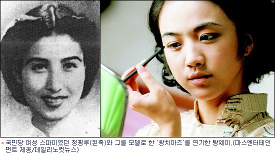 장아이링이 남편에게 들은 ''딩모춘 암살 기도사건'' 은 국민당 여성 스파이 정핑루(탕웨이가 연기한 왕치아즈의 실제 모델)가 당시 친일정보기관의 핵심 책임자 딩모춘(양조위가 연기한 이선생의 실제 모델)에게 접근해 암살을 기도한 것. [BestNocut_R]