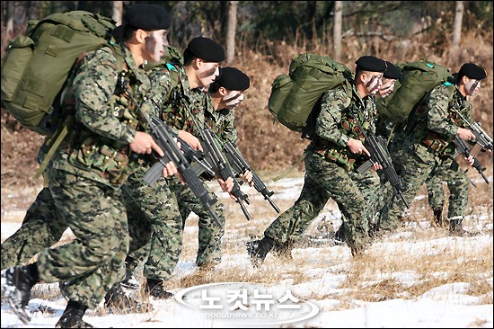 [BestNocut_R]최강의 전사 ''2007 특전사 Top-Team''에 선발된 1공수여단 이진형 대위팀 부대원들이 22일 오전 경기도 광주시 특전사교육단에서 진행된 전력공개 행사에서 사격훈련을 실시하고 있다.