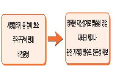 10년 전에 비해 보험업계 전반의 영업방식이 크게 바뀌었다. 인맥 중심의 고전적 영업행태는 사라지고 전문적인 재테크 강의가 그 자리를 메웠다. 생명보험이나 손해보험 등 단순한 상품판매에서 벗어나 변액보험, 펀드, 연금보험 등 보험시장 자체의 전문성이 높아지고 규모가 커진 측면도 물론 작용했다.