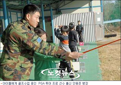 안 병장은 "아직 아이들에게 골프채가 무거워 보이고 스윙도 서툴지만 열심히 배우는 모습을 보면 흐뭇해진다"며 "군 복무를 하면서 특기를 살려 아이들에게 희망을 줄 수 있어 보람있다"고 소감을 전했다.