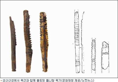 국립가야문화재연구소(소장 강순형)는 진흥왕 시대(540-576년) 신라가 가야 지역을 복속한 뒤 축성한 것으로 추정되는 성산산성에 대한 제12차 발굴조사에서 목간 76점과 함께 목기와 토기류 등을 발견했다고 11일 밝혔다. [BestNocut_R]