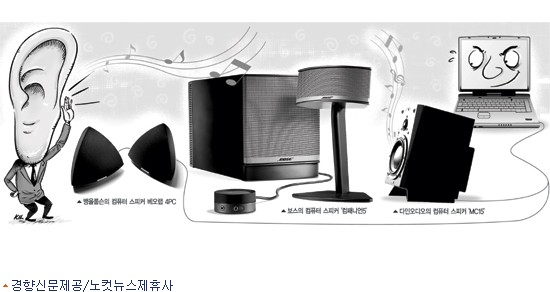 미국 스피커 명가인 ''''보스''''도 컴퓨터용 스피커 제품들을 다양화하고 있다. 좌우로 소리나는 스테레오 스피커 ''''컴패니언 2''''는 14만3000원으로 가장 싸다. 컴패니언3는 저음용 서브 우퍼가 달려 34만1000원, 노트북용 미니 스피커인 ''''뮤직 모니터''''는 49만5000원이다.