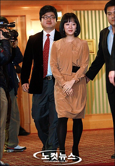 27일 오후 서울 논현동 임피리얼 팰리스 호텔에서 열린 안연홍-조정웅 결혼발표 기자회견에 안영홍(오른쪽)과 조정웅이 나린히 입장하고 있다. 조정웅은 현재 e스포츠 르카프오즈팀 감독으로 안연홍과 오는 6월 결혼식을 올릴 예정이다.