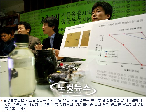 [BestNocut_L]환경운동연합은 오늘(28일) 기자회견을 열고 유화제가 섞인 기름과 타르 덩어리의 독성을 각각 비교한 결과 이렇게 나타났다고 밝혔다.