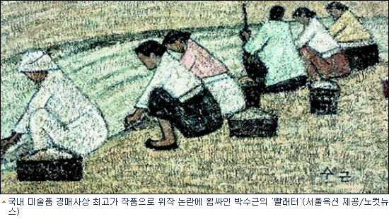 지난 5월 서울옥션을 통해 국내 미술품 경매 사상 최고가인 45억2천만원에 거래된 박수근(1914-1965) 화백의 유화 ''빨래터''(크기 72×37㎝)가 진위 논란에 휩싸였다.