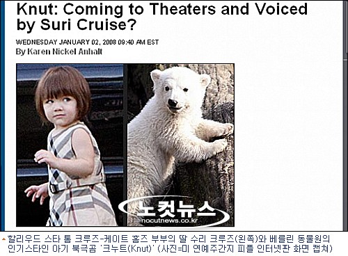 한편, 피플지는 수리가 지난해 톰 크루즈의 영화 촬영차 독일에 머물 당시 엄마인 케이티 홈즈와 함께 베를린 동물원을 방문, 크누트와의 만남을 가졌다고 덧붙여 전했다.