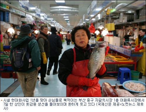 부산의 대표적인 명소 자갈치시장이 지난 2006년 12월 신축 건물에서 영업을 시작한 지 1년 만에 방문객과 매출이 배 이상 증가하는 등 현대화 사업의 효과를 톡톡히 누리고 있는 것으로 나타났다.
