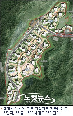 부산 동구청의 발주로 지난달 마무리된 ''범천 유형유보 1구역(안창마을) 재개발정비사업 정비계획수립 용역''에 따르면 현재 870 세대의 노후건축물이 들어선 마을은 3개 단지, 36개 동, 1천6백여 세대의 아파트 단지로 개발된다.