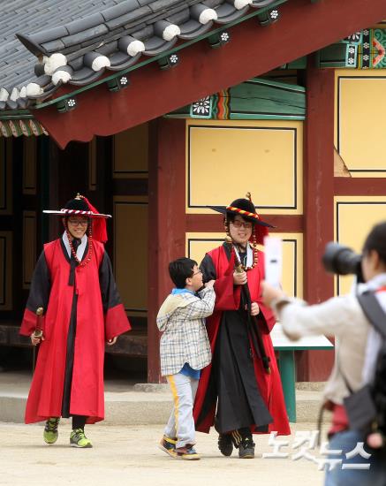 '2014 원주시 우리문화유산 스마트엔티어링' 행사가 12일 오전 강원도 원주시청 푸른광장에서 첫 막이 올랐다. 참가자들이 강원감영지에서 '진짜 관찰사 찾기' 미션을 수행하고 있다.