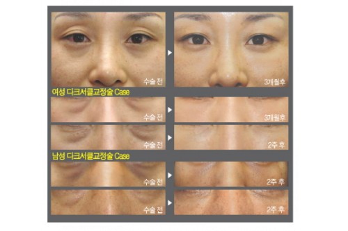 다크써클은 개선에 어려움이 있고 개선하더라도 재발되는 경우가 많았지만 최근에는 다크써클 개선도 외부절개나 흉터 없이 쁘띠성형으로 30분에서 1시간이면 시술이 가능하며 시술 직 후 눈 밑이 환해진 것을 곧바로 확인 할 수 있는 것이 장점이다. 수술 후 3일이 지나면 세안 및 화장이 가능하고 2주 정도 지나면 주사바늘 자국도 사라지게 된다.