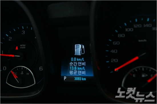 이 차를 운전하기 전 연비는 13.6km/l로 표시되어 있었는데 급가속, 급출발 오르막 내리막 등 여러 가지 주행을 했더니 14.7km/l로 복합연비 13.3km/l와 큰 차이는 없었다.