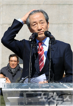 새누리당 정몽준 의원이 지난달 2일 오후 서울 남산공원 백범광장에서 서울시장 출마 선언 준비를 하고 있다. (윤창원 기자/자료사진)