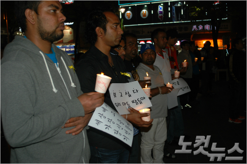 이날밤 다문화특구내 만남의광장에 모인 중국, 러시아, 스리랑카, 몽골, 필리핀 대표와 외국인 등 250여명은 국적과 언어를 초월해 손에 손에 촛불을 들고 희생자와 유가족을 위해 기도했다.
