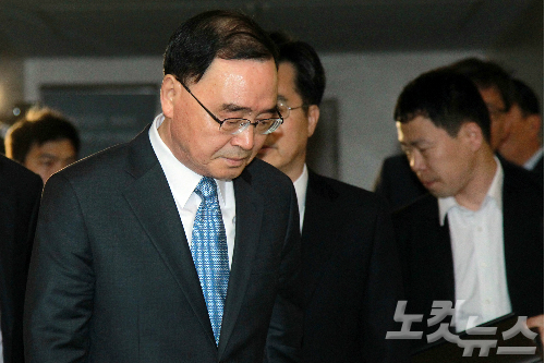 정홍원 국무총리가 27일 오전 서울 종로구 세종로 정부중앙청사에서 세월호 참사와 관련 긴급 기자회견을 통해 사고의 예방과 초동대응 및 수습과정의 문제에 대해 대국민 사과와 함께 총리직 사퇴의사를 밝혔다.(사진=윤창원 기자)