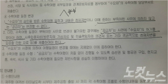 수학여행을 담당자들은 계약조건이기 때문에 반드시 학교장 허가를 받아야 한다고 합니다.