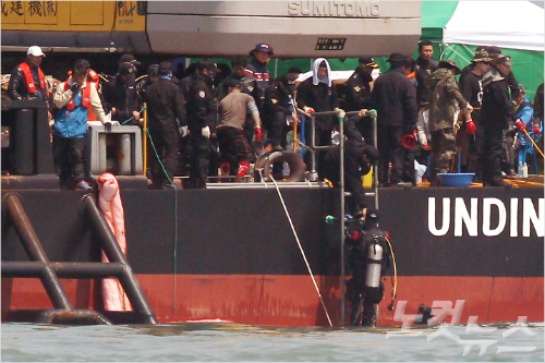 하지만 정부는 사고를 일으킨 청해진 해운과 계약을 맺은 언딘측에만 구조 작업을 의존했고, 다른 민간 업체가 가져온 다이빙벨 등 첨단 장비를 돌려보내기도 했습니다.