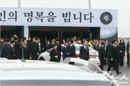 29일 오전, 박근혜 대통령이 안산시 단원구 화랑유원지에 위치한 세월호 희생자 합동분향소를 방문했다. (사진=노컷TV 민구홍 PD)