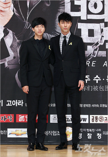 배우 차승원, 이승기(오른쪽)이 30일 오후 서울 목동 SBS 신사옥에서 열린 SBS 새 수목드라마 ‘너희들은 포위됐다’ 제작발표회에서 취재진을 향해 포즈를 취하고 있다.