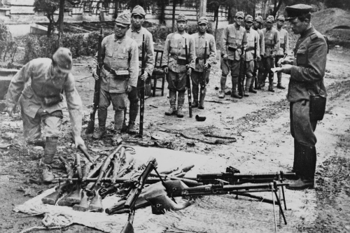 소련군에게 항복한 후 무기를 반납하는 일본군 병사들.