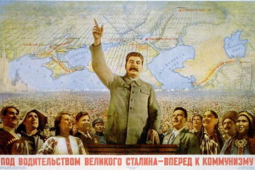 경애하는 스탈린 동무의 초상화. 스탈린 집권 시절 이러한 포스터가 수없이 많이 제작되었다.
