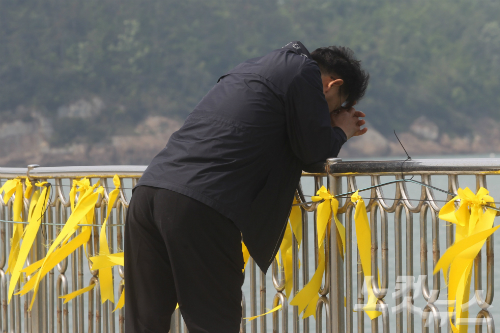 세월호 여객선 침몰 사고 실종자 가족이 기도를 하고 있다. (사진=윤성호 기자)
