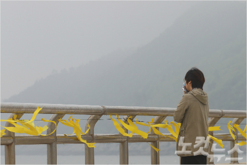 여객선 '세월호' 침몰 사고 17일째인 2일 오전 전남 진도항에서 실종자 가족들이 안개 낀 바다를 바라보며 눈물을 흘리고 있다. 윤성호기자