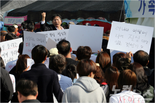 세월호 침몰 16일째인 1일 안산에서 출발한 세월호 유가족들이 피켓을 들고 '아이들을 살려내라'며 구호를 외치고 있다. 윤성호기자